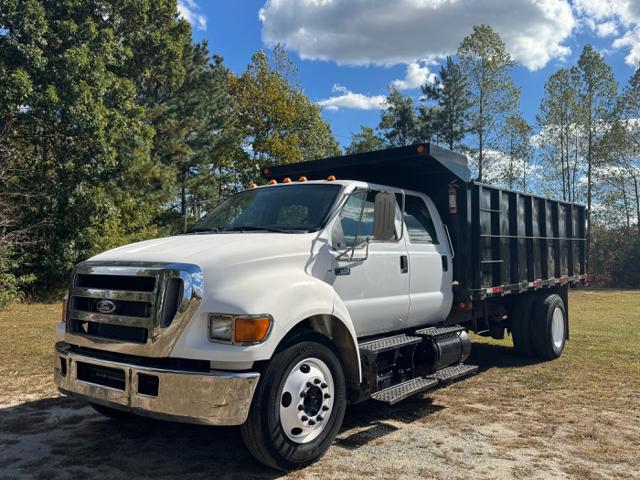 2005 Ford F-650 super duty crew cab with a 16ft hydraulic PTO dump. In cab dump controls. 4ft sides, barn swing doors with a side swing door. Reman Reviva C-7 Caterpillar turbo diesel engine installed August 2017. Weller reman Allison automatic transmission, rear pintle hitch, electric brake controller, 5ft under body storage box. 80% or better on 10r-22.5 matching tires. Air brakes, GVWR 26,000lbs, under CDL. AC, cruise control, a good solid work truck ready to work!